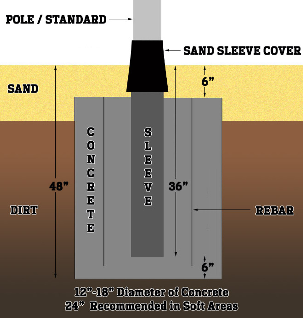 - 12" height allows for easy alignment of Sleeve Cover when sliding pole into sleeve.