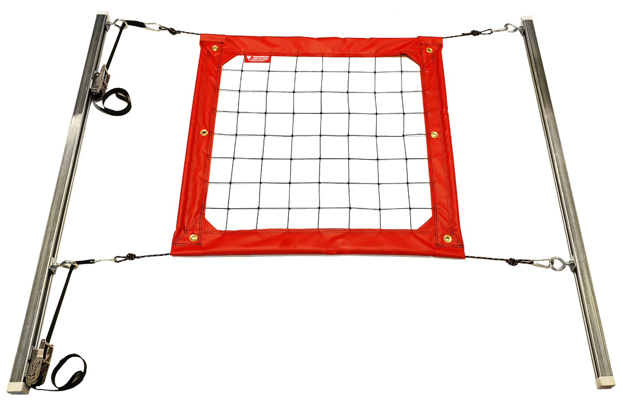 - Eye bolts slide up and down tracks to allow infinite net height settings.