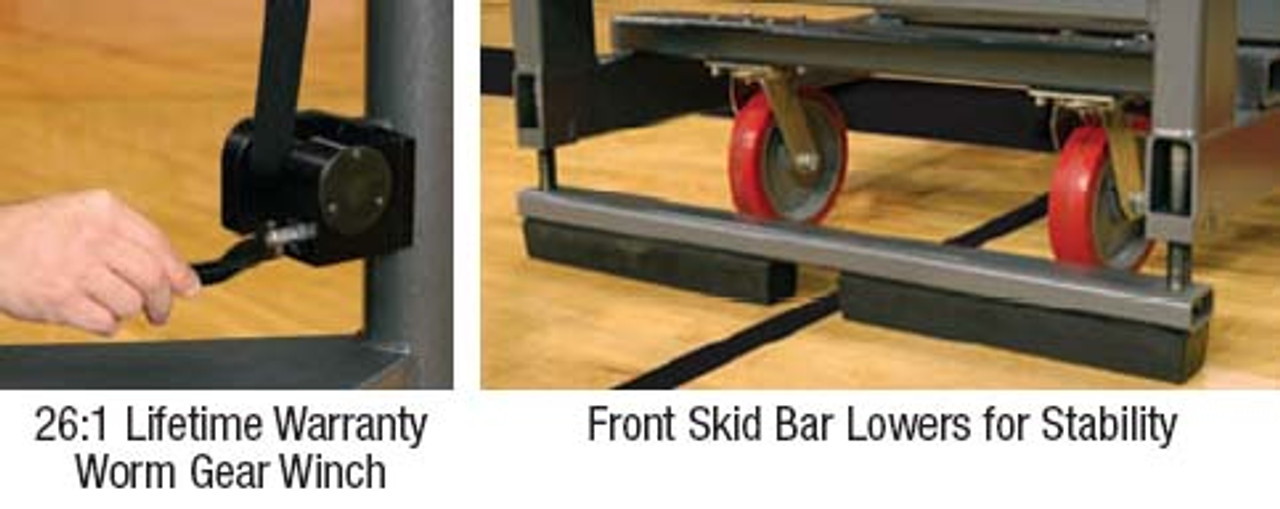 - Rolls easily on any floor with dual rear and single front 8" diameter, 2" wide non-marking urethane casters