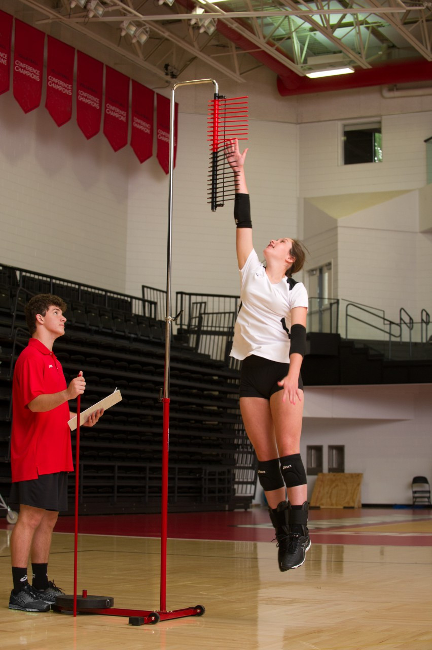 Most affordable and accurate device on the market for measuring vertical jump! Telescopes from 4 to 12 feet, with heavy duty base and casters for stability and portability. Moveable metal arms placed at 1" increments allow for accurate jump measurement. Highest arm reached remains angled until jump reading is measured. Vertical Challenger comes with handy reset pole.