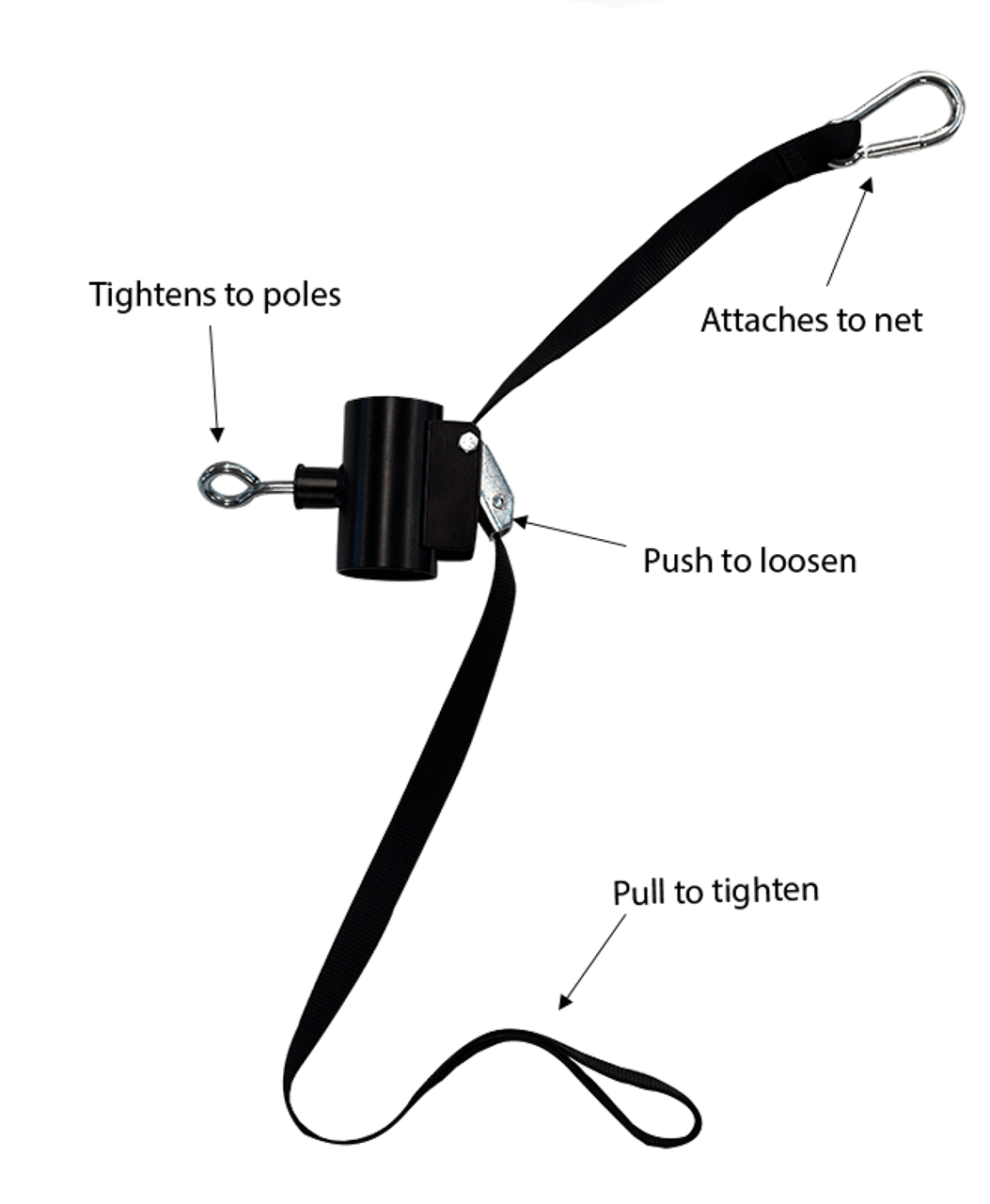 - Pulling straps adds tension to nets attached to Roll Away Volleyball Poles (24", 30", 36", T-Base)