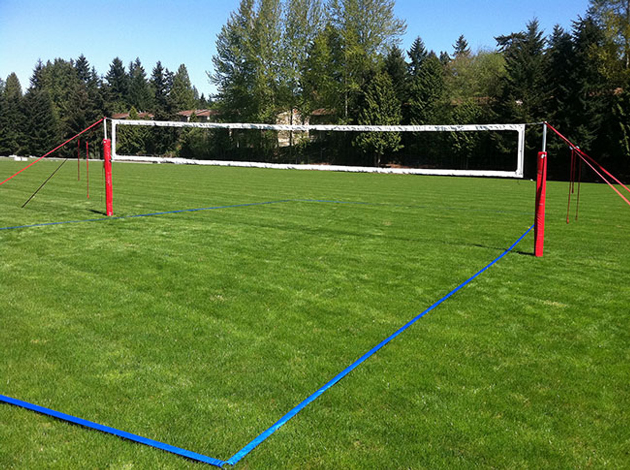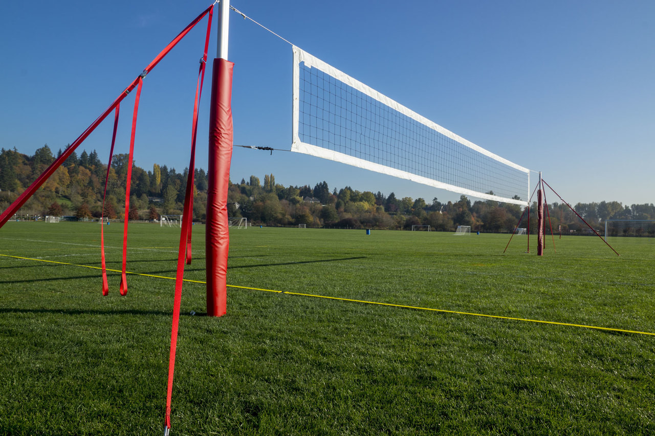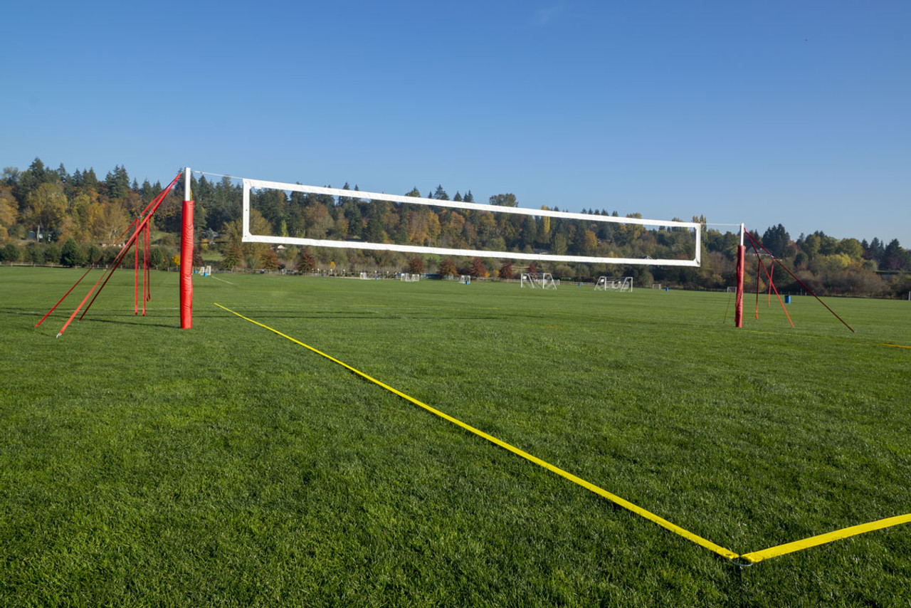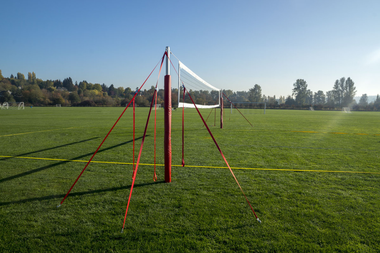 The 4” PTS: Pro Tournament System is our most complete portable volleyball net system, including a 4” bordered volleyball net, wrap around style pole padding, 2” Pro Adjustable Boundary Lines and two additional guywire sets for extra tension. This set is great for those looking for something very close to regulation volleyball and will last for many years.