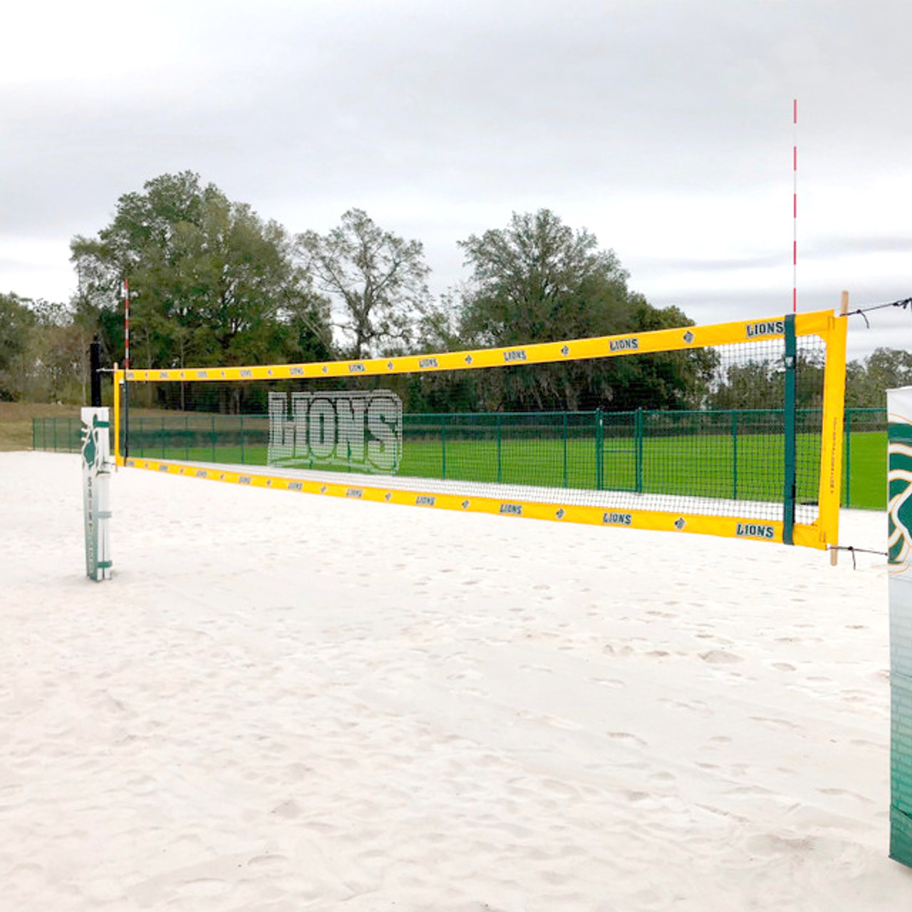 Our top of the line beach volleyball net with custom printing on the top and bottom borders and printing on the netting. This net uses 1-inch netting instead of the standard 4-inch netting on our nets to help show off your text / artwork!