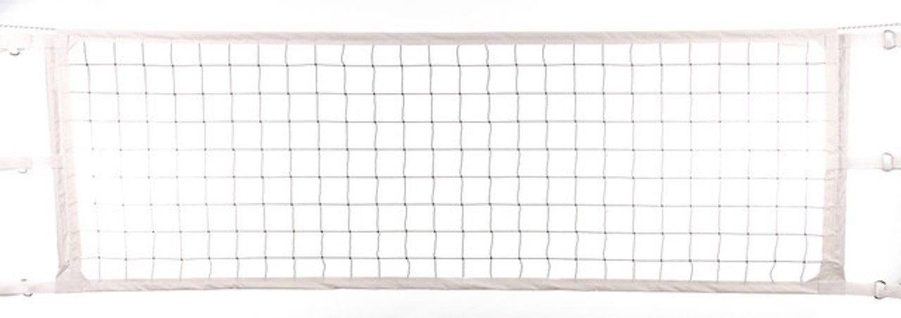 The QAV-2 Quick Attach Velcro Power Indoor Net is a quality net that features strong sewn on Velcro Tie Straps for the top, middle, and bottom of each side of the net. This net will usually fit any brand of poles if the poles are installed within the standard distance apart from each other between 35-37 feet. If your poles are narrower or further apart than this we suggest ordering a custom QAV-32 for an additional charge of $50. The velcro straps allow for a simple and quick method of adding tension to your Indoor Volleyball setup. Like our other nets, the QAV-2 comes in a standard width and height but can be custom made to suit your preferences. Made in USA in our very own warehouse, ensuring the highest quality and care during the production process.