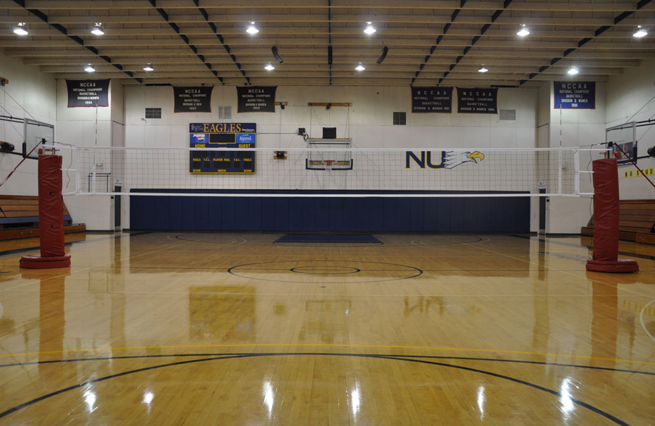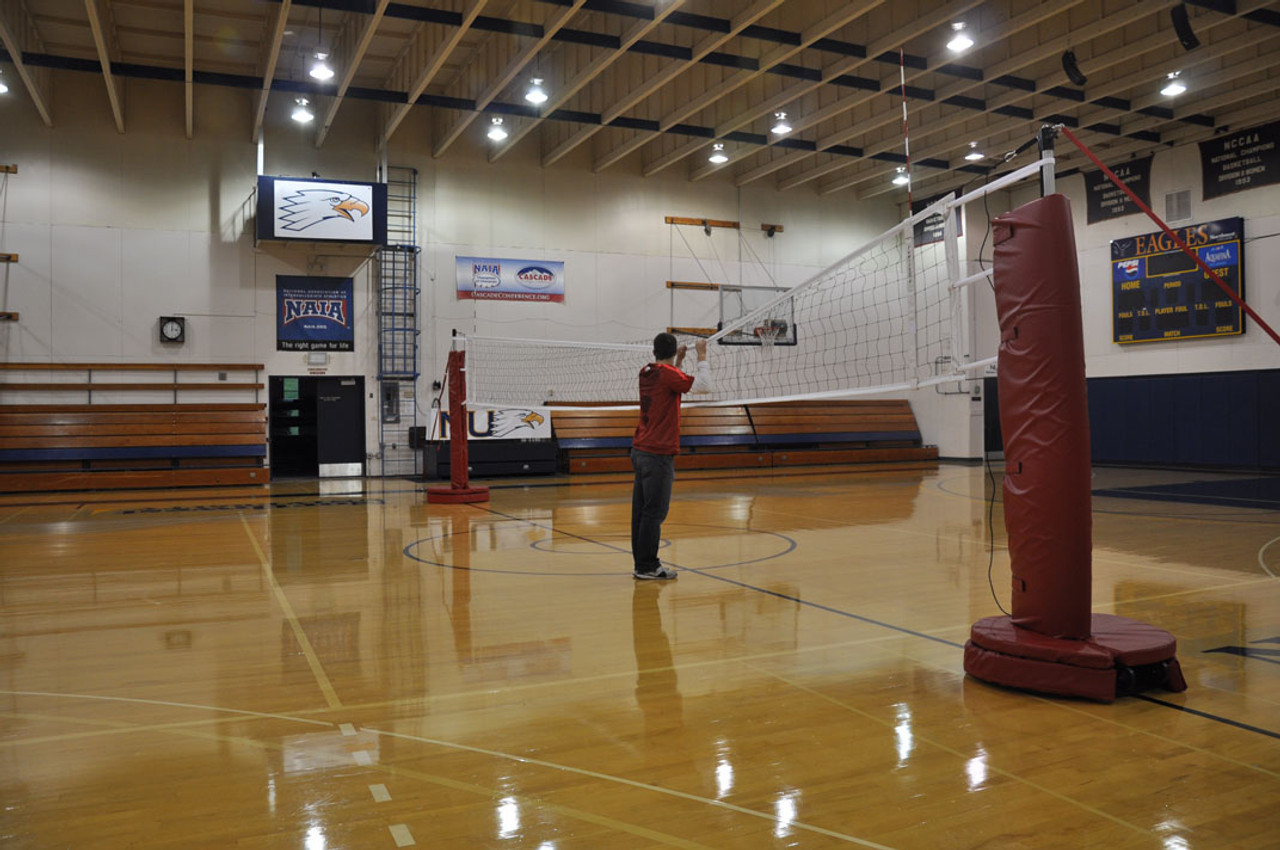 Finally a competition grade above ground volleyball system which doesn't require anything installed in the floor. Industrial grade pressurizing suction cups lock guywire support lines from the pole to the floor allowing guitar string tension on the volleyball net. (Suction cups require a non-porous, strong floor to maintain suction)
